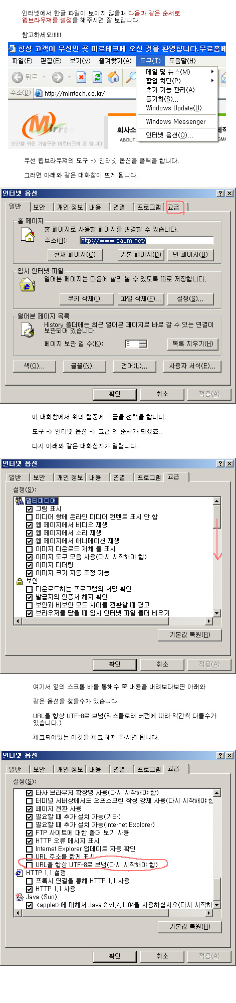 IE-6.x버전 한글파일 잘 보이지 않을때 페이지 정보 작성자 관리자 쪽지보내기 메일보내기 홈페이지 자기소개 아이디로 검색 전체게시물 쪽지보내기 메일보내기 홈페이지 자기소개 아이디로 검색 전체게시물 댓글 0건 조회 8,315회 작성일 07-11-10 03:22 본문 .. 페이스북 공유 트위터 공유 구글+ 공유 SNS 공유 목록 이전글"우리가족 CO2 제로 캠프" 에 초대합니다. 08.07.24 다음글경상남도교육감선거 영상물 홈페이지 게시 07.11.08 댓글목록 댓글목록 등록된 댓글이 없습니다.