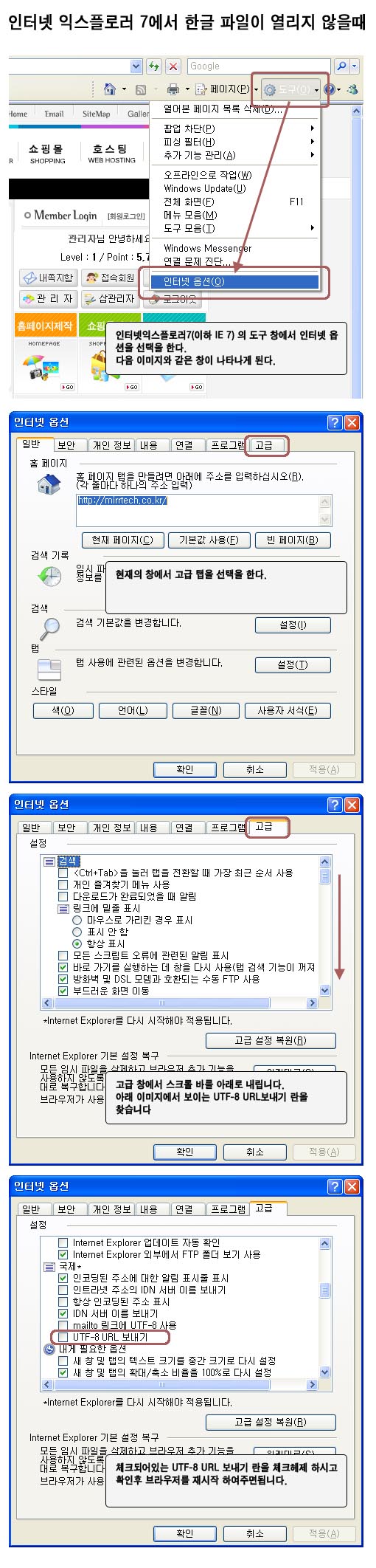 "익스플로러 7"에서 한글파일이 열리지 않을때의 대처방법 페이지 정보 작성자 관리자 쪽지보내기 메일보내기 홈페이지 자기소개 아이디로 검색 전체게시물 쪽지보내기 메일보내기 홈페이지 자기소개 아이디로 검색 전체게시물 댓글 0건 조회 11,681회 작성일 06-12-19 05:29 본문 이미지를 참고해주세요 페이스북 공유 트위터 공유 구글+ 공유 SNS 공유 목록 이전글진주포럼 웹사이트가 완성되었습니다. 06.12.29 다음글범아산업 웹사이트가 오픈되었습니다. 06.12.05 댓글목록 댓글목록 등록된 댓글이 없습니다.