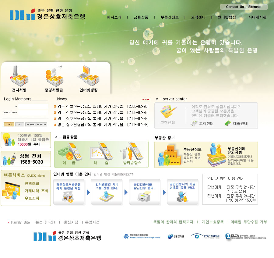 경은상호신용금고의 시안입니다 페이지 정보 작성자 관리자 쪽지보내기 메일보내기 홈페이지 자기소개 아이디로 검색 전체게시물 쪽지보내기 메일보내기 홈페이지 자기소개 아이디로 검색 전체게시물 댓글 0건 조회 8,127회 작성일 07-09-11 10:23 본문 경은상호신용금고의 시안입니다 SNS 공유 페이스북 공유 트위터 공유 구글+ 공유 목록 댓글목록 댓글목록 등록된 댓글이 없습니다.